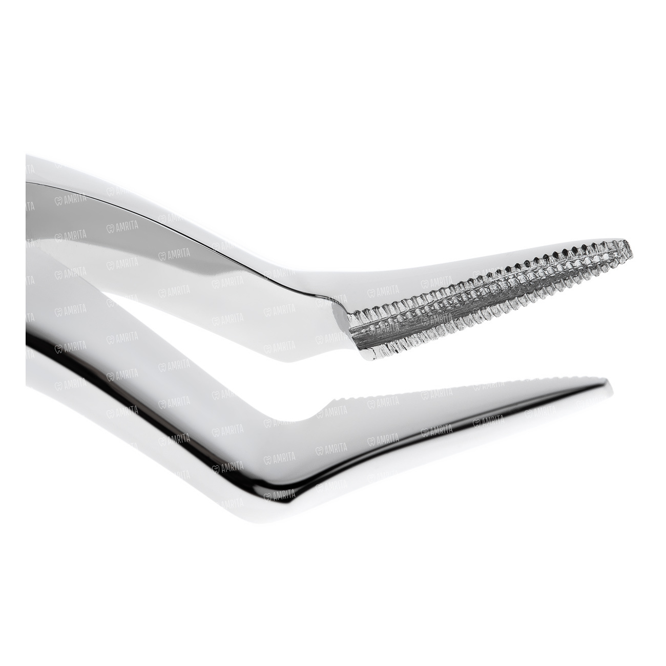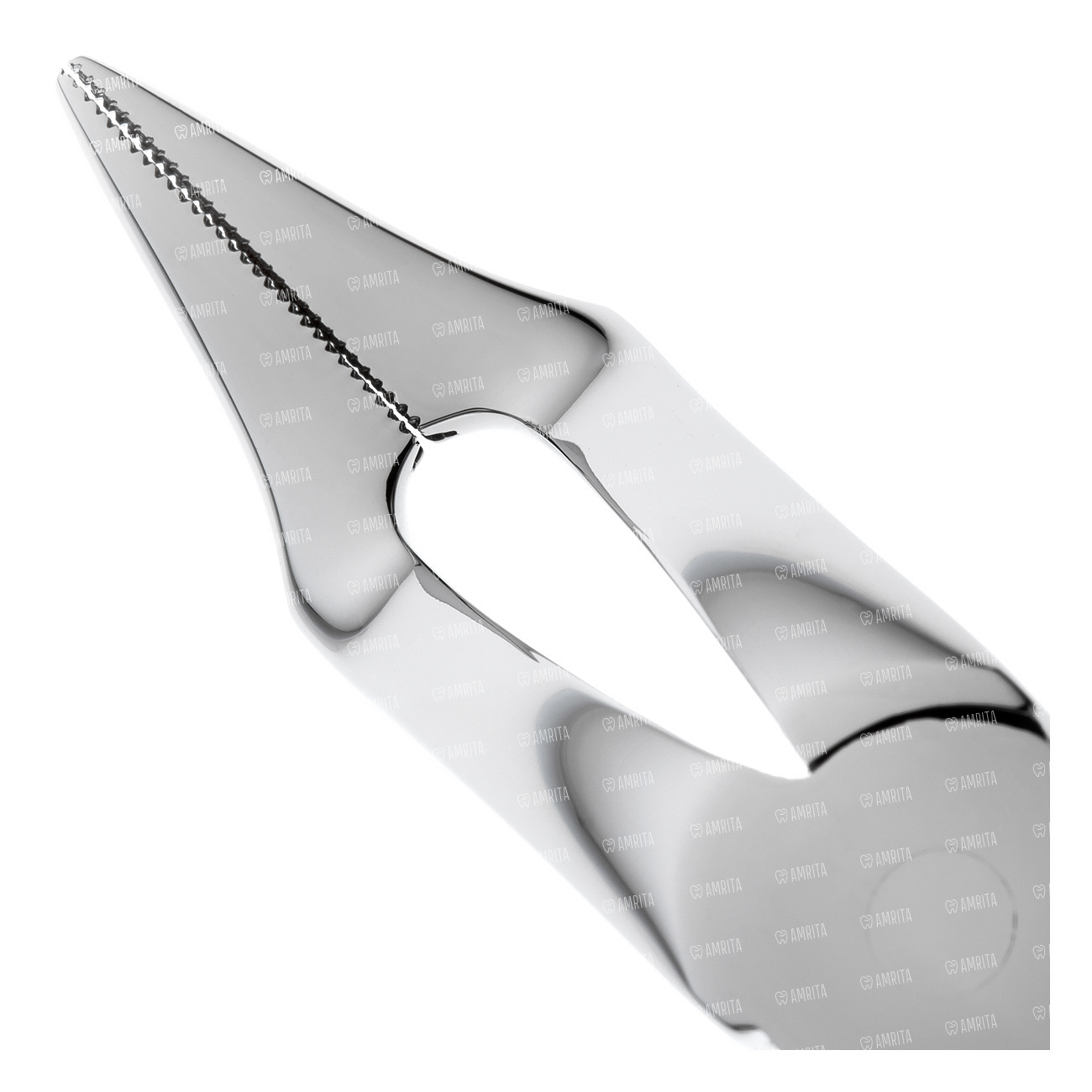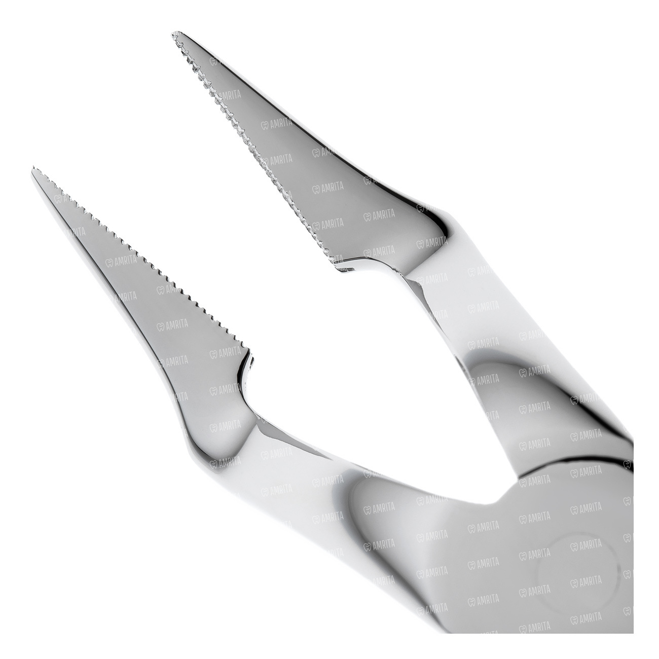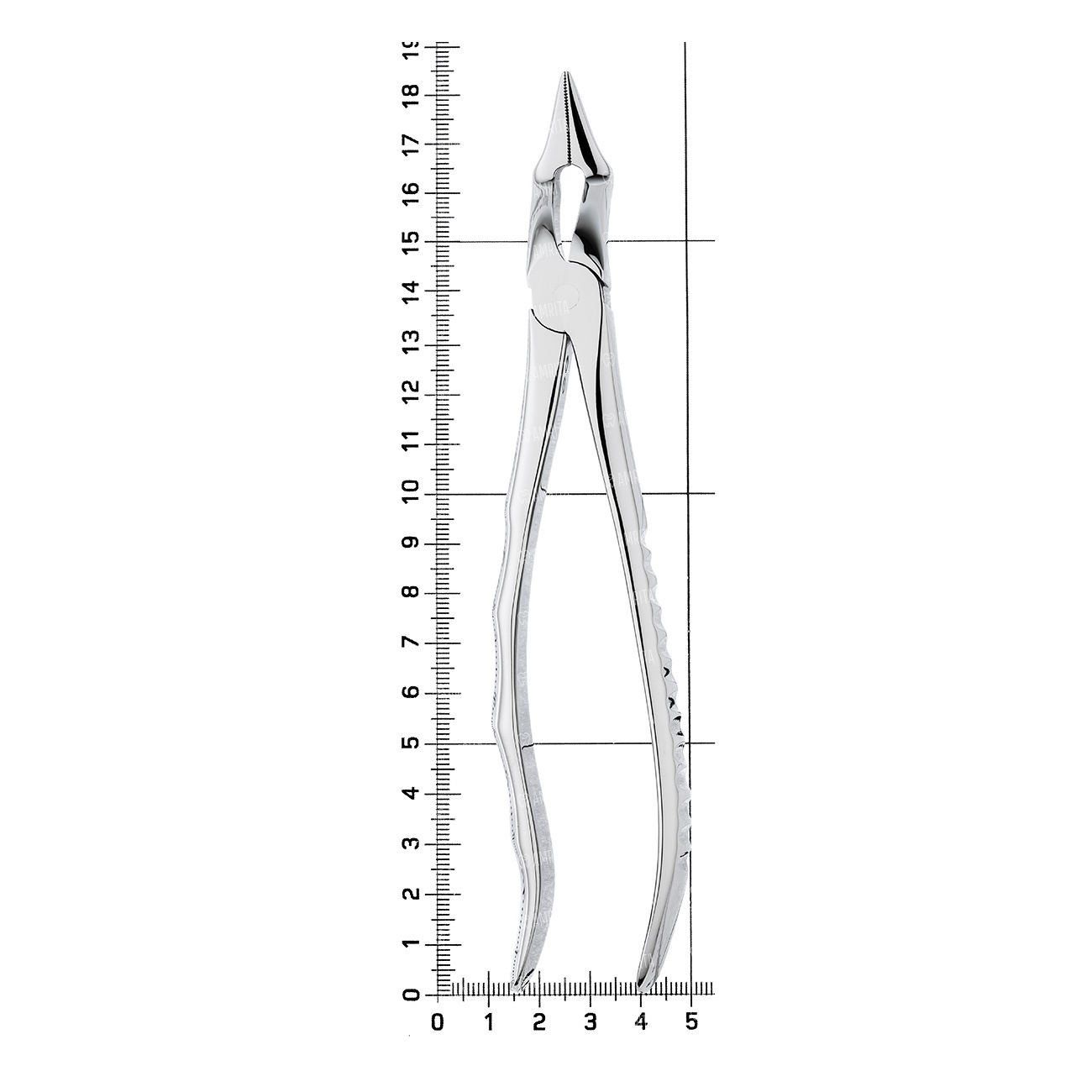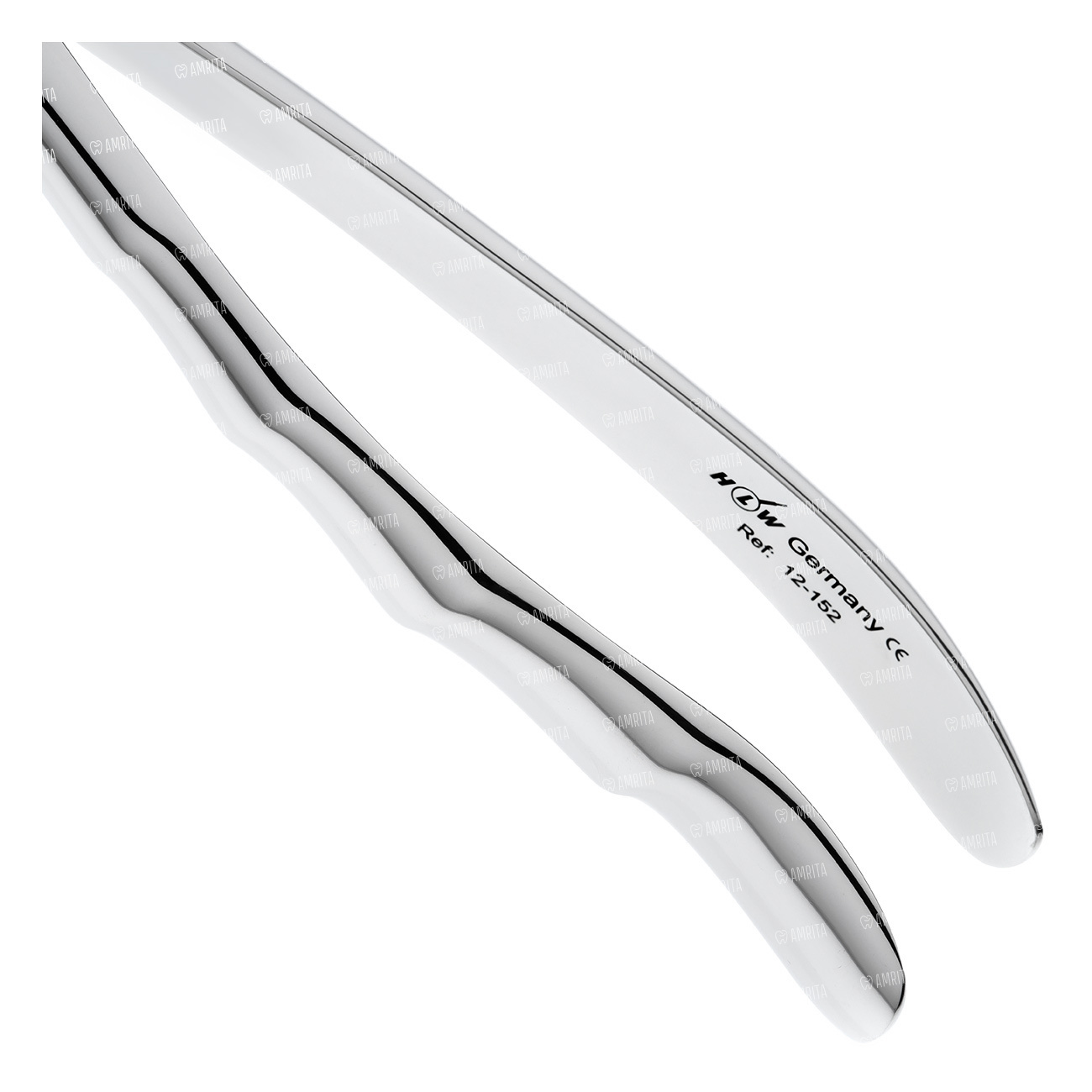 Щипцы коревые с анатомической ручкой HLW (Германия) предназначены для удаления корней на верхней челюсти. Рабочая часть байонетных щипцов узкая, длинная, с продольно-поперечными насечками на внутренней поверхности и сходящимися щечками. Такая конструкция инструмента облегчает доступ к корням зубов. Ручки инструмента имеют анатомические формы на наружной поверхности для удобства использования и предотвращения скольжения фаланг пальцев.