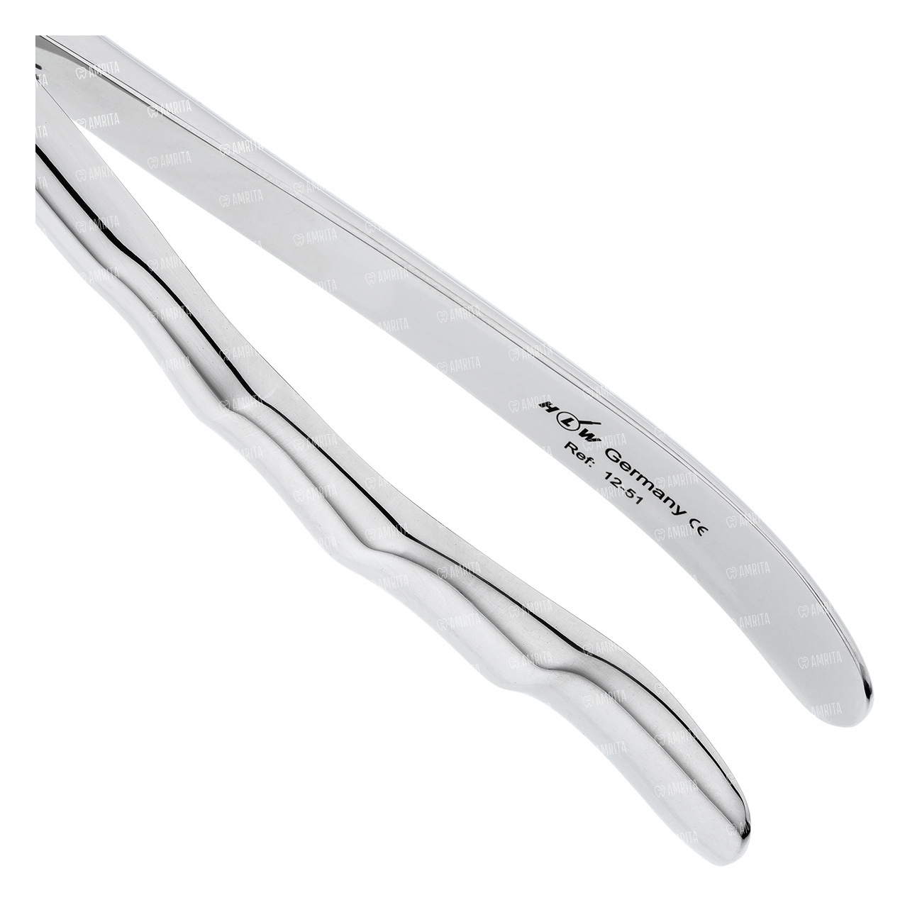 Щипцы корневые с анатомической ручкой HLW (Германия) предназначены для удаления корней на верхней челюсти. Рабочая часть представляет собой штыковидный (байонетный) изгиб с продольно-поперечными насечками на внутренней поверхности, что обеспечивает плотный захват корня и облегчает его удаление. При смыкании щипцов щечки сходятся.