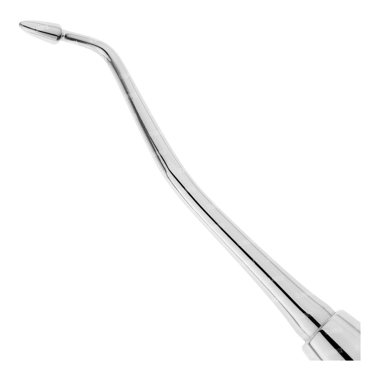 Ручка круглая диаметром не более 6 мм и покрыта ретенционным узором предотвращающим скольжение инструмента в фалангах пальцев врача при работе.