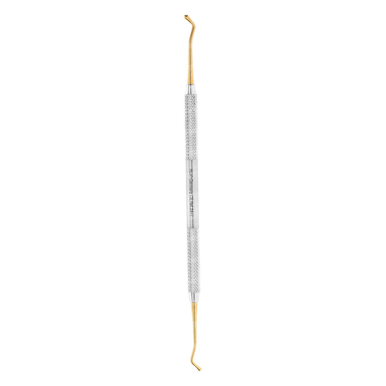 Гладилка штопферная двусторонняя асимметричная. Моделировочный инструмент для терапевтической стоматологии, может применяться в работе с любыми видами пломбировочного материала для воссоздания окклюзионных поверхностей зубов жевательной группы.