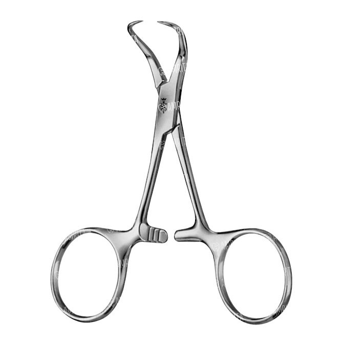 Цапка по BACKHAUS, длина 90 мм, BF431R, B.Braun (Aesculap, Германия) предназначена для фиксации операционного белья вокруг раны, иногда вместе с салфетками для большей прочности, ей захватывают кожу после анестезии. Применяются также для удерживания операционного белья на перевязочном и операционном столиках. Инструмент выполнен из нержавеющей стали, рабочая область изогнутая внутрь с заостренными концами, рукоятка с кольцевыми фиксаторами между которыми находится замок кремальера, обеспечивающий более прочную фиксацию.