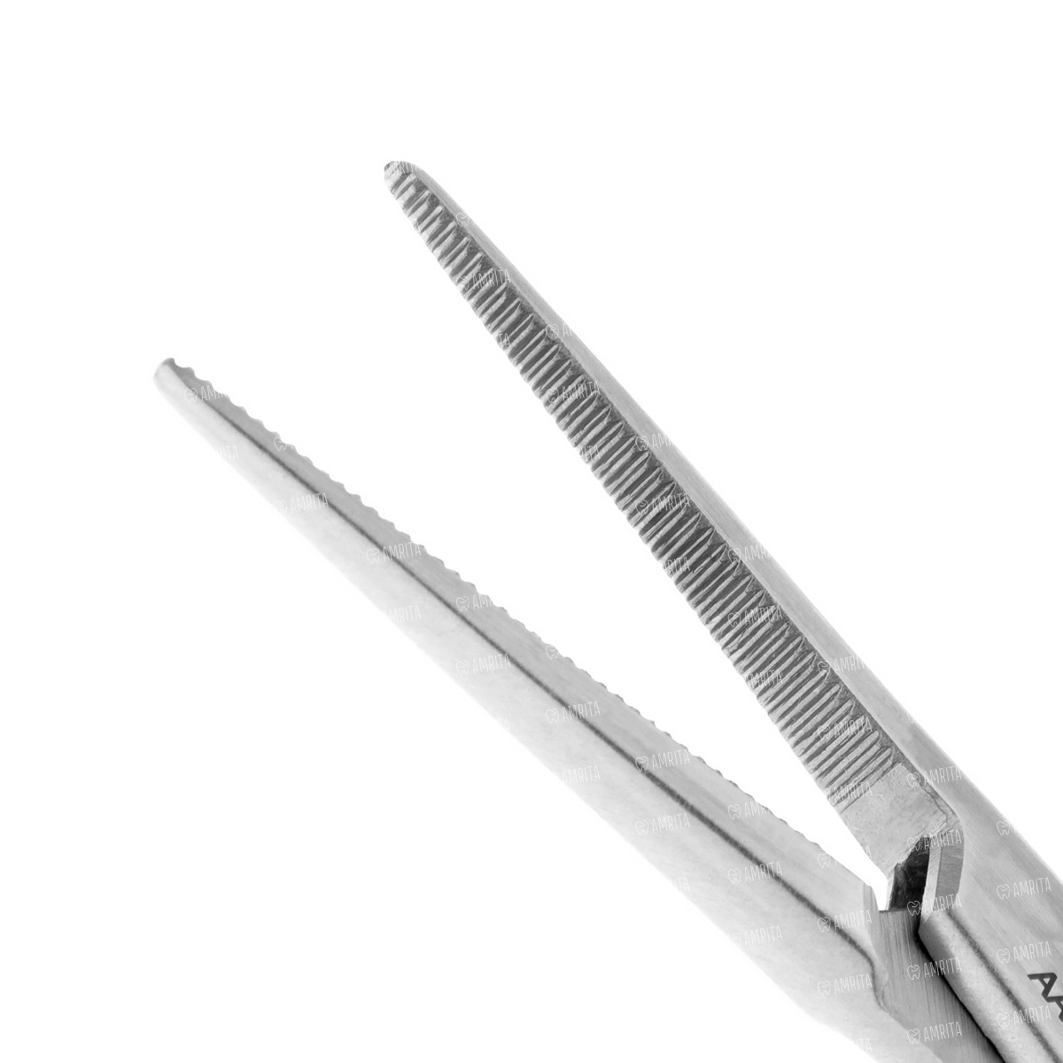 На внутренних поверхностях щечек зажима нанесен поперечный ретенционный узор, который позволяет надежно удерживать ткани во время процедур по остановке кровотечения. Инструмент имеет самые тонкие рабочие поверхности, благодаря которым очень удобно проводить операции в области губ, преддверия рта, переднего отдела полости рта.