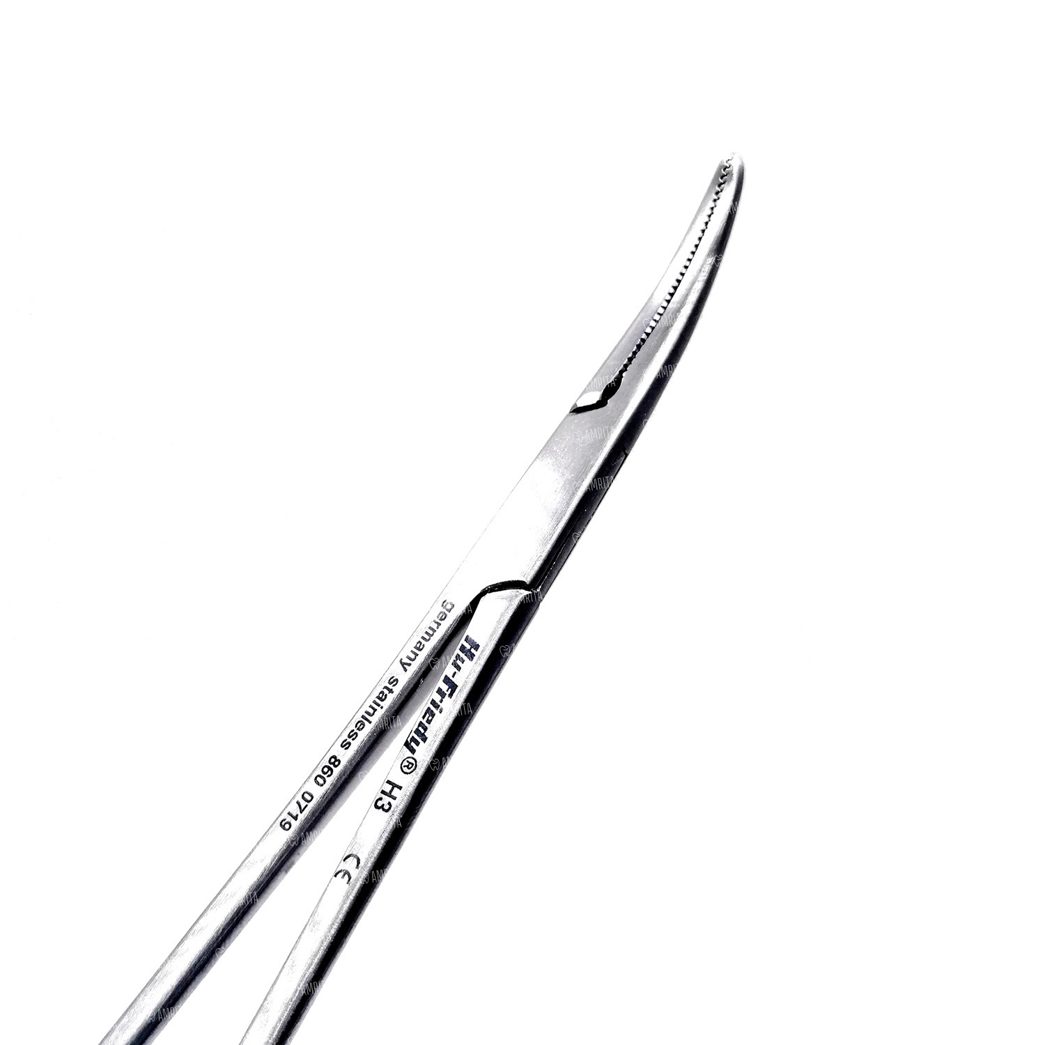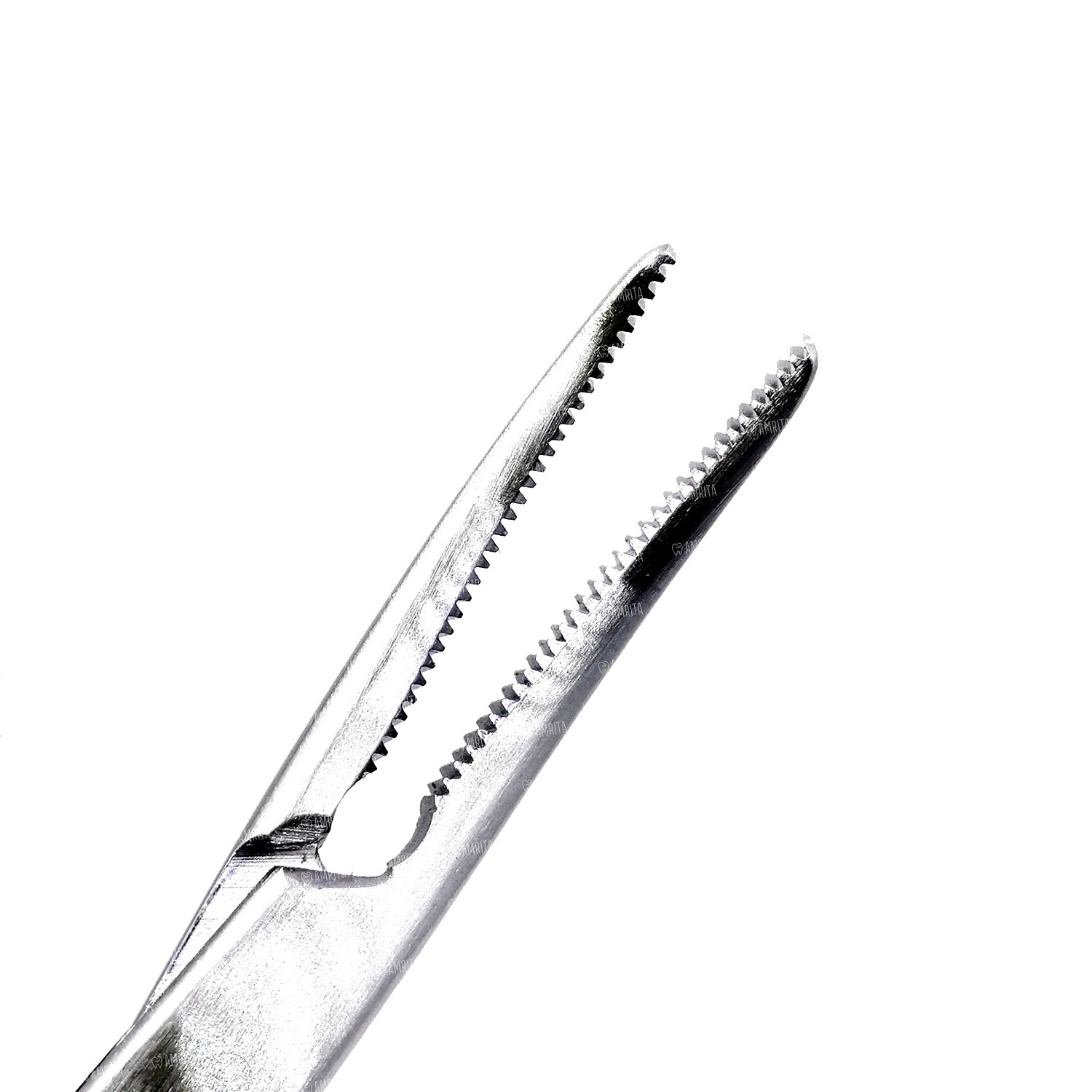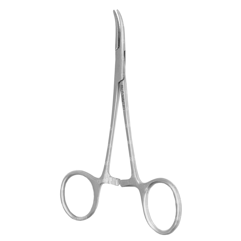 Тонкие изогнутые щечки инструмента позволяют работать на самых труднодоступных участках ротовой полости. Ребристая внутренняя поверхность щечек надежно пережимает сосуд, приостанавливая кровотечение.