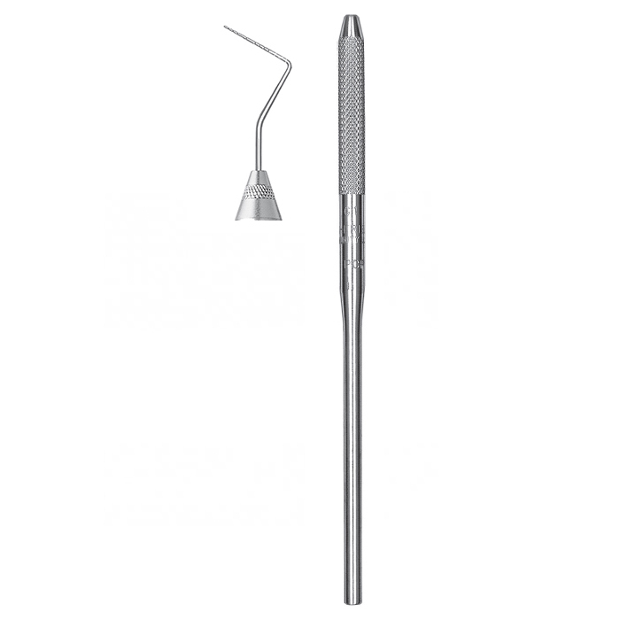 Инструмент помогает определять глубину пародонтальных карманов, толщину пародонта и степень кровоточивости десен. Изогнутый тонкий рабочий стержень легко проникает в пародонтальный карман, не затрагивая окружающие ткани.