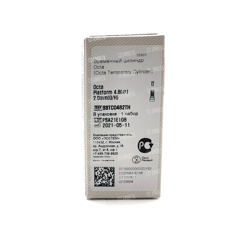 Временный титатовый цилиндр Octa изготовлен из титана 3 класса. Для его фиксации используется шестигранная отвертка 1.2.