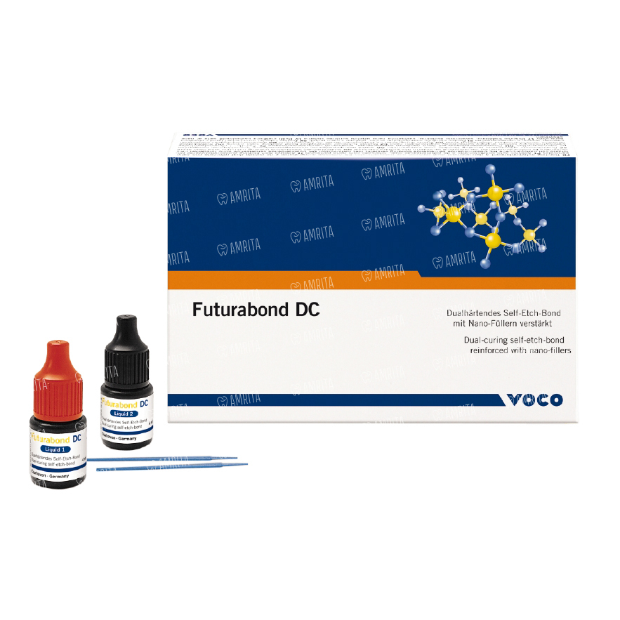 Futurabond DC – это самопротравливающий бонд, применяемый со пломбировочными материалами светового, химического или двойного отверждения для получения прочного, долговременного сцепления.