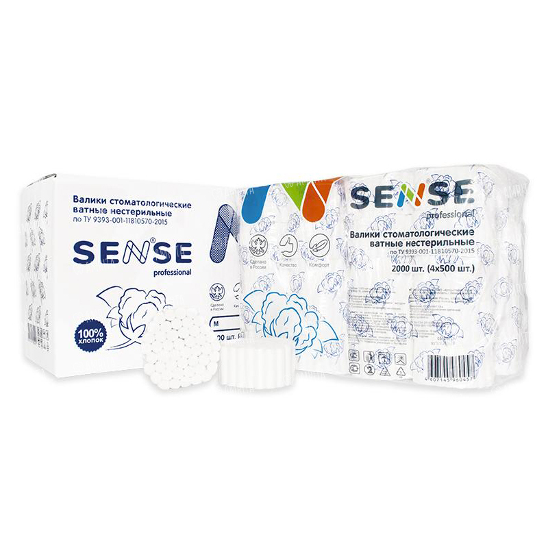 Валики стоматологические SENSE professional, нестерильные, 2000 шт, картонная упаковка