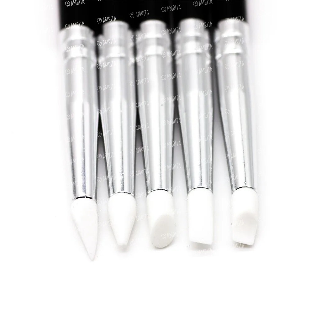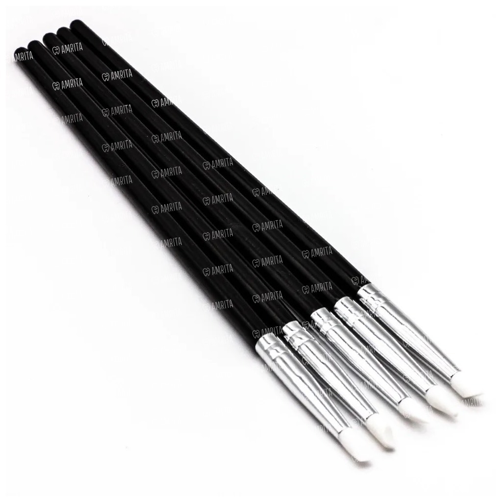 - Полный набор для любой задачи. Комплект из пяти кистей с наконечниками разной формы предоставляет врачу универсальный арсенал для всех этапов моделирования — от распределения материала и формирования бугров до тонкой проработки фиссур.
