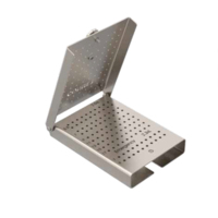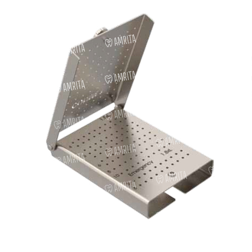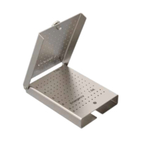 Кассета-укладка изготовлена из титана, имеет прямоугольную форму размером 112х82 мм. Применяется для стерилизации винтов D=1,5 мм.