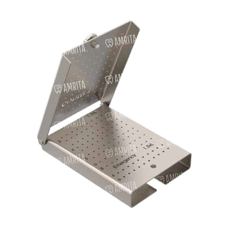 Кассета-укладка изготовлена из титана, имеет прямоугольную форму размером 112х82 мм. Применяется для стерилизации винтов D=1,2 мм.