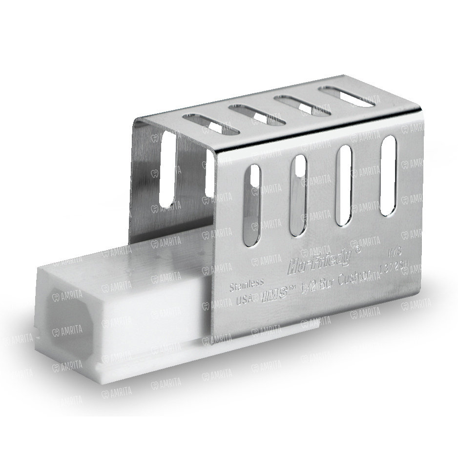 Полое прямоугольное силиконовое основание с крышкой из нержавеющей стали надежно удерживает боры в специальных пазах. Конструкция обеспечивает дренаж и надлежащую очистку.
