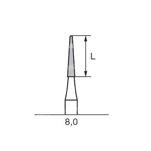 Бор твердосплавный CC 136 FX, конус закругленный, D=1.6 мм, L=8.0 мм, HP, красный