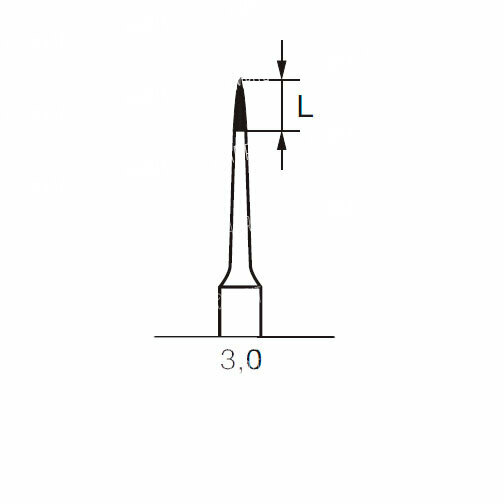 Финишный твердосплавный бор CF 132, конус безопасный конец, D=0.8 мм, L=3.0 мм, FG, белый