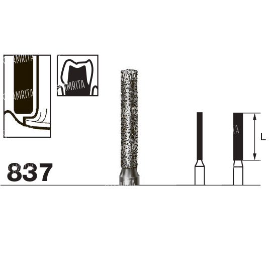 Бор алмазный 837 L, цилиндр удлиненный, D=1.4 мм, L=10.0 мм, FG, черный