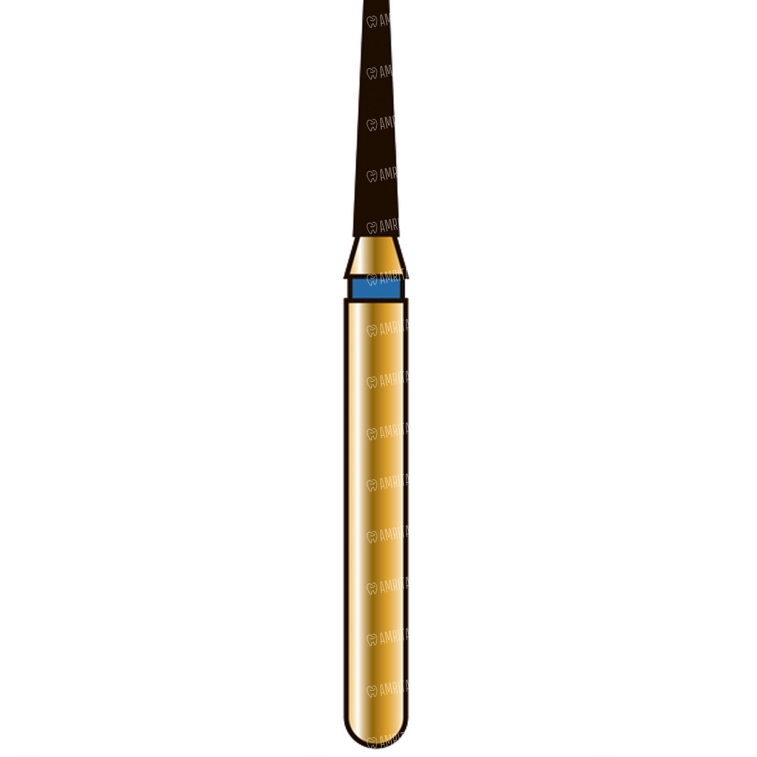 Многослойный алмазный бор G846, конический с плоским концом, под турбинный наконечник. Используется для создания придесневого уступа, а также для сглаживания осевых стенок после препарирования и для выравнивания на этапе финишной обработки.
