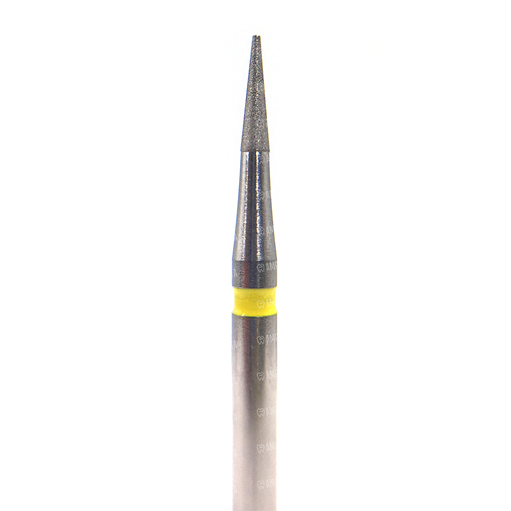 Бор алмазный 956, заостренный, D=1.0 мм, L=4.0 мм, FG, желтый