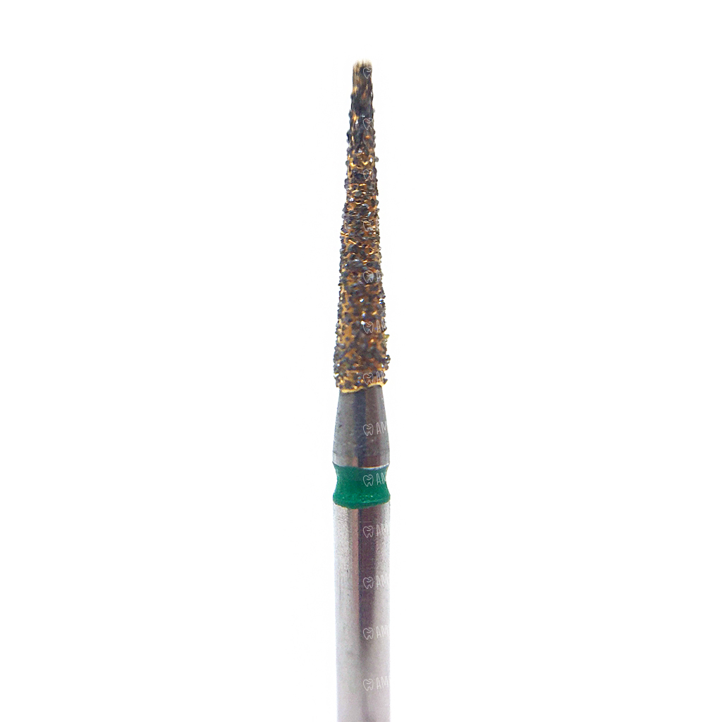 Бор алмазный 858QG, GOLD Line, конус заостренный, тонкий, D=1.4 мм, L=8.0 мм, FG, зеленый