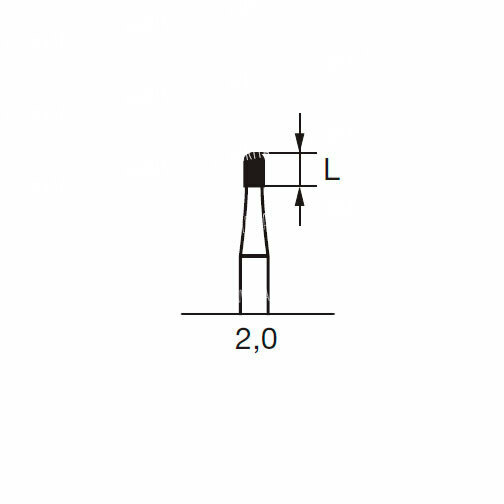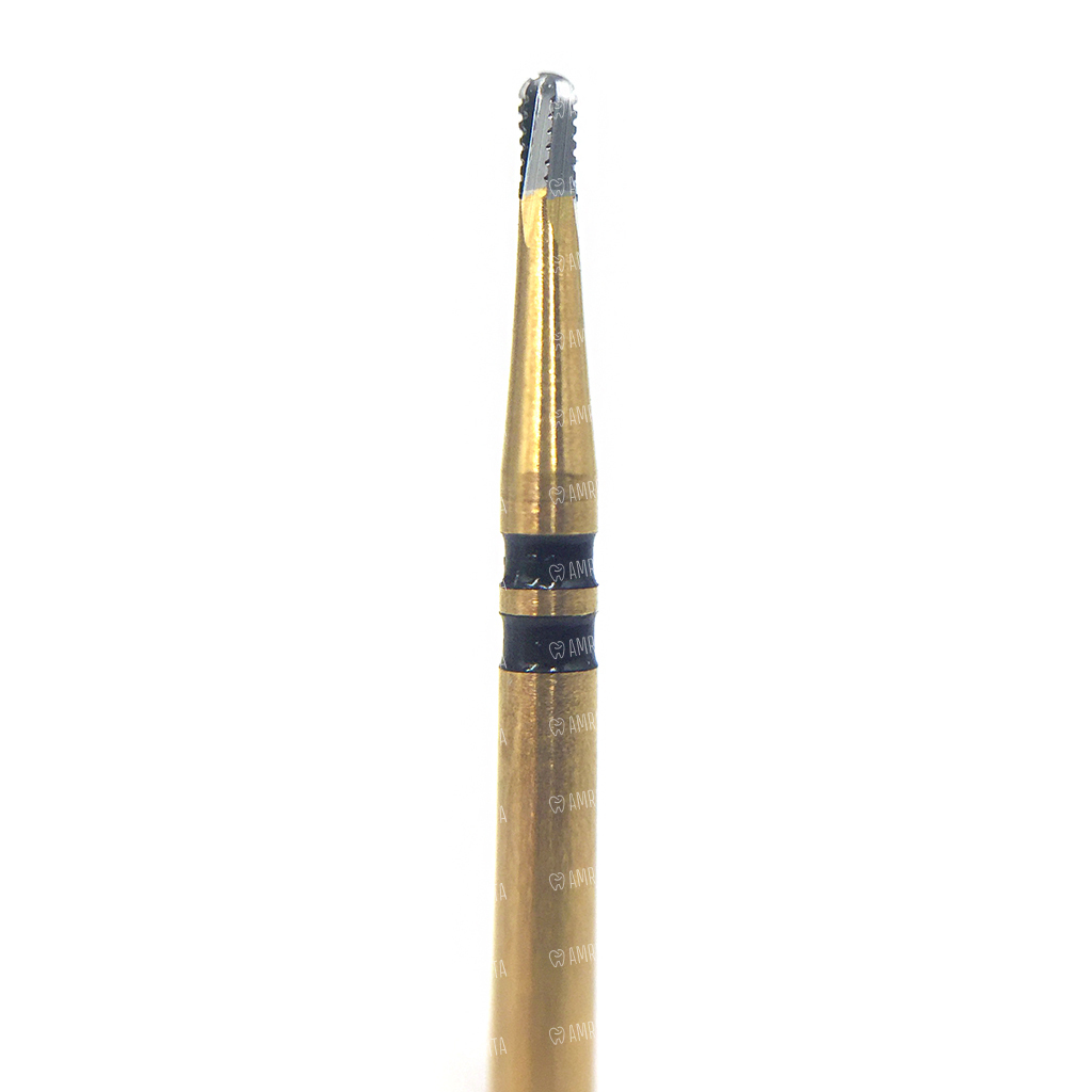 Бор твердосплавный CB 34, цилиндр закругленный, с зубцами, D=1.2 мм, L=2.0 мм, 6 лезвий, FG, 2 черных кольца