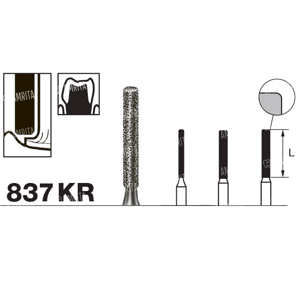 Бор алмазный 837 KR, цилиндр закругленный, D=1.4 мм, L=8.0 мм, FG, синий