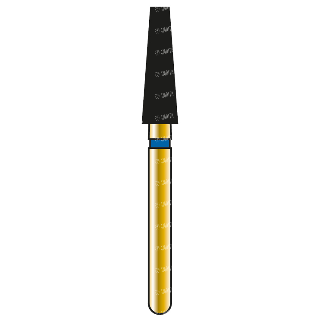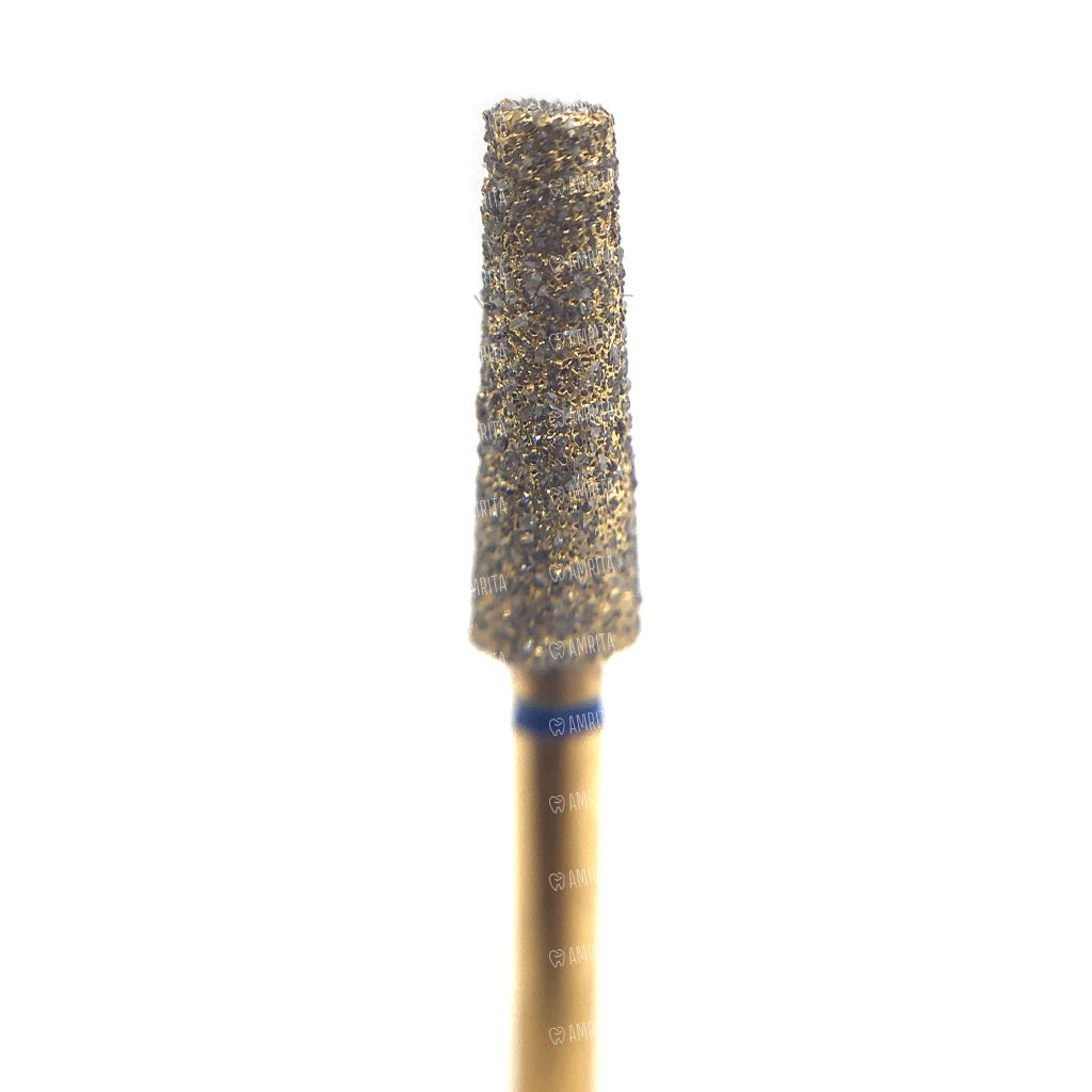 Многослойный алмазный бор G847, конический с плоским концом, под турбинный наконечник. Используется для создания придесневого уступа, а также для сглаживания осевых стенок после препарирования и для выравнивания на этапе финишной обработки.