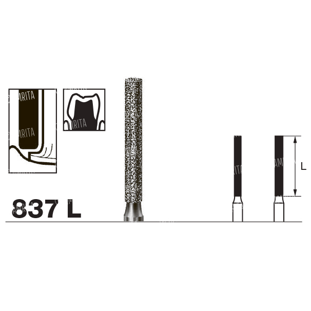 Бор алмазный 837 L, цилиндр удлиненный, D=1.4 мм, L=10.0 мм, FG, синий