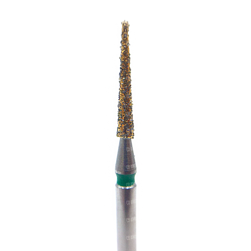Игловидная рабочая часть подходит для обработки окклюзионных поверхностей. Алмазное покрытие применяется для удаления старого наполнителя и коронок или финишной шлифовки зубов и ортопедических конструкций.
