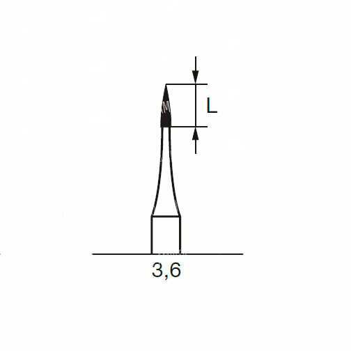 Финишный твердосплавный бор CF 246 UF, пламя, D=0.9 мм, L=3.6 мм, FG, белый