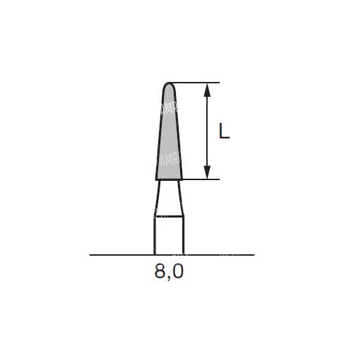 Бор твердосплавный CC 138 QFX, конус закругленный, D=2.3 мм, L=8.0 мм, HP, зеленый