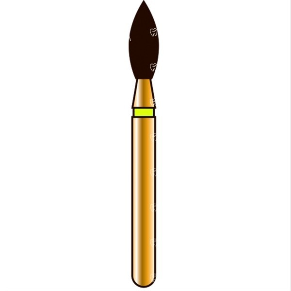 Многослойный алмазный бор G368 — пулевидный, под турбинный наконечник. Закругленный кончик бора позволять формировать дуговидные кромки и намечать предварительную границу препарирования на окклюзионной поверхности. Используется для препарирования окклюзионных поверхностей резцов и клыков при подготовке зуба под все виды коронок. Боры малых диаметров также могут использоваться для финишной обработки окклюзионных поверхностей зубов.