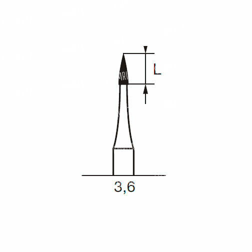 Финишный твердосплавный бор CF 246, пламя, D=1.2 мм, L=3.6 мм, FG, синий