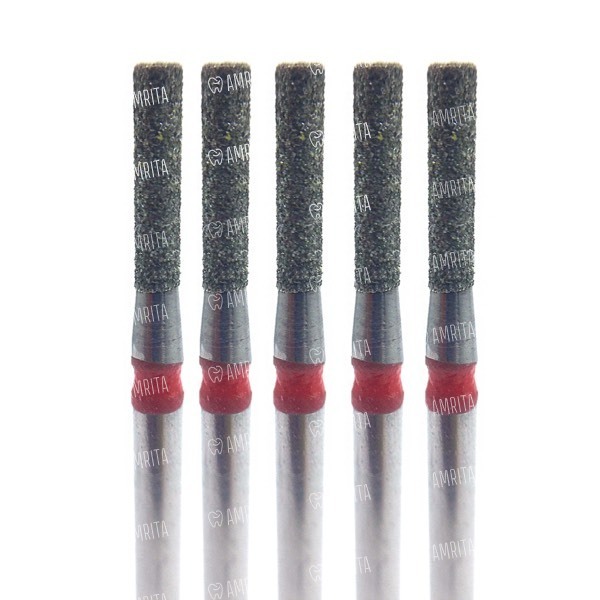 Бор алмазный 837F, цилиндр плоский, D=1.4 мм, L=6.0 мм, FG, красный, 5 шт