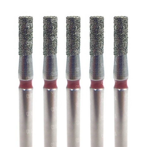 Бор алмазный 835F, цилиндр плоский, D=1.4 мм, L=3.5 мм, FG, красный, 5 шт