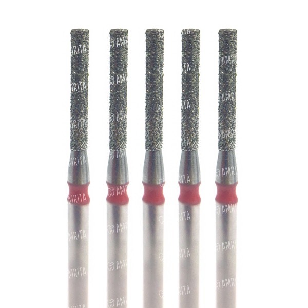 Бор алмазный 837LF, цилиндр плоский, D=1.2 мм, L=8.0 мм, FG, красный, 5 шт