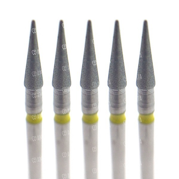 Бор алмазный 898EF, конус заостренный, тонкий, D=1.8 мм, L=6.0 мм, FG, желтый, 5 шт