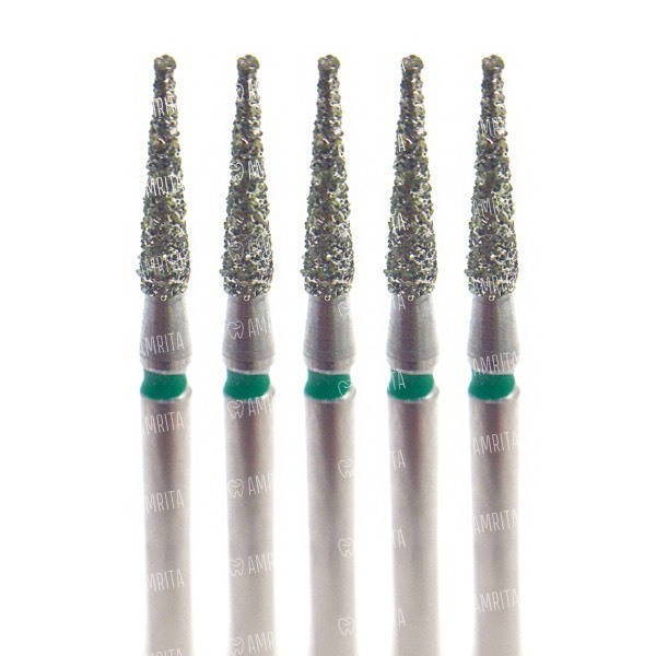 Бор алмазный 898G, конус заостренный, тонкий, D=1.4 мм, L=6.0 мм, FG, зеленый, 5 шт