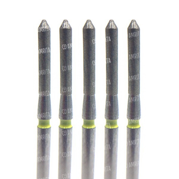 Бор алмазный 885EF, цилиндр остроконечный, D=1.4 мм, L=8.0 мм, FG, желтый, 5 шт