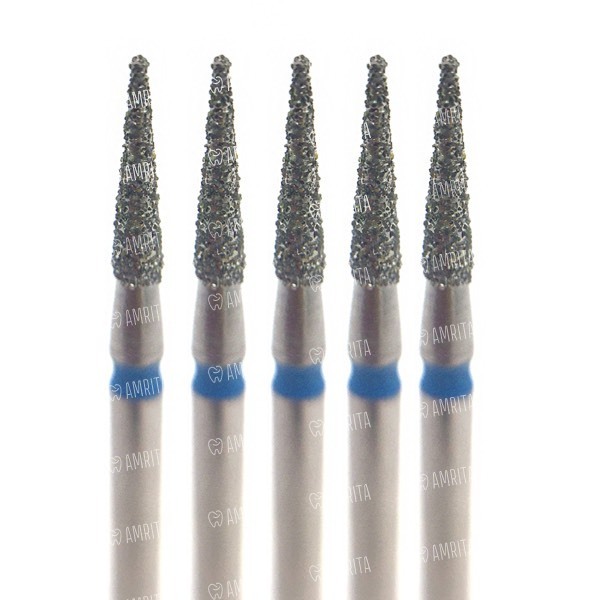 Бор алмазный 898, конус заостренный, тонкий, D=1.4 мм, L=6.0 мм, FG, синий, 5 шт