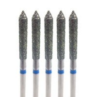 Бор алмазный 886, цилиндр остроконечный, D=1.4 мм, L=10.0 мм, FG, синий, 5 шт