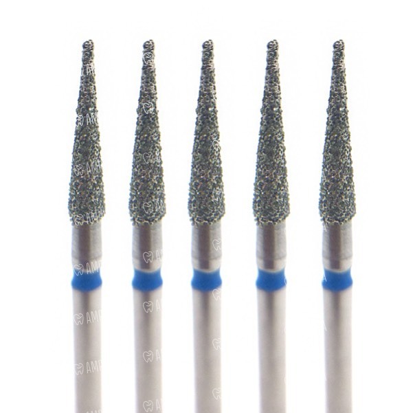 Бор алмазный 858, конус заостренный, тонкий, D=1.8 мм, L=8.0 мм, FG, синий, 5 шт