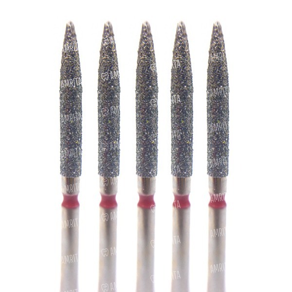 Бор алмазный 863LF, цилиндр заостренный, D=1.8 мм, L=11.5 мм, FG, красный, 5 шт