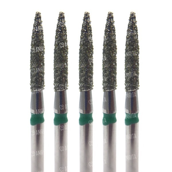 Бор алмазный 862G, цилиндр заостренный, D=1.4 мм, L=8.0 мм, FG, зеленый, 5 шт
