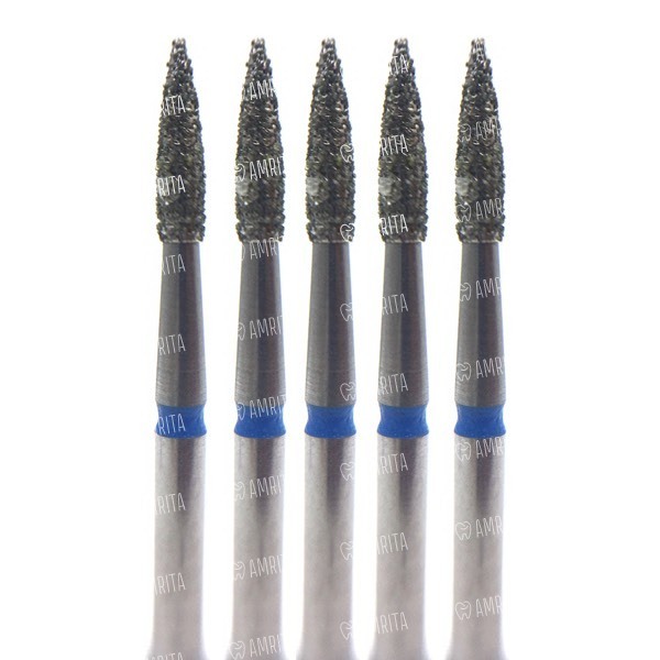 Бор алмазный 860, пламя, D=1.4 мм, L=3.0 мм, FG, синий, 5 шт