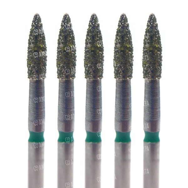 Бор алмазный 860G, пламя, D=1.6 мм, L=5.0 мм, FG, зеленый, 5 шт