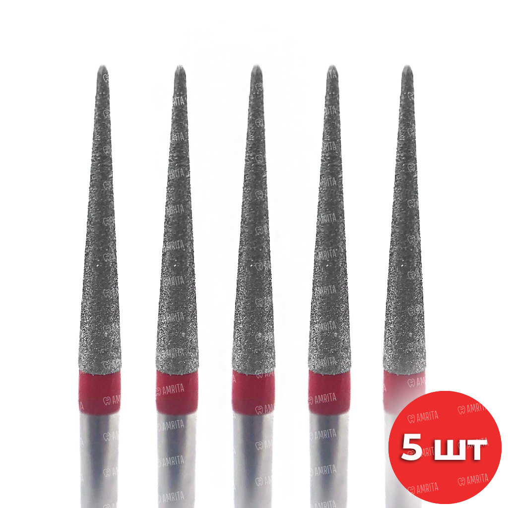 Бор алмазный Ecoline E 859 F, заостренный, D=1.6 мм, FG, красный, 5 шт