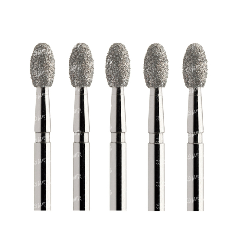 Бор алмазный 379, олива, D=2.1 мм, L=4.5 мм, FG, желтый, 5 шт