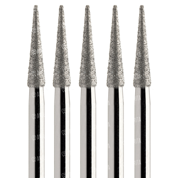 Алмазный бор 858 применяется для работы с высокооборотными бормашинами. Стандартный хвостовик позволяет быстро и легко установить бор на турбинный наконечник. Пикообразная форма рабочей части позволяет максимально аккуратно обработать труднодоступные участки зубного ряда. Подходит для финишной шлифовки пломбировочных составов.