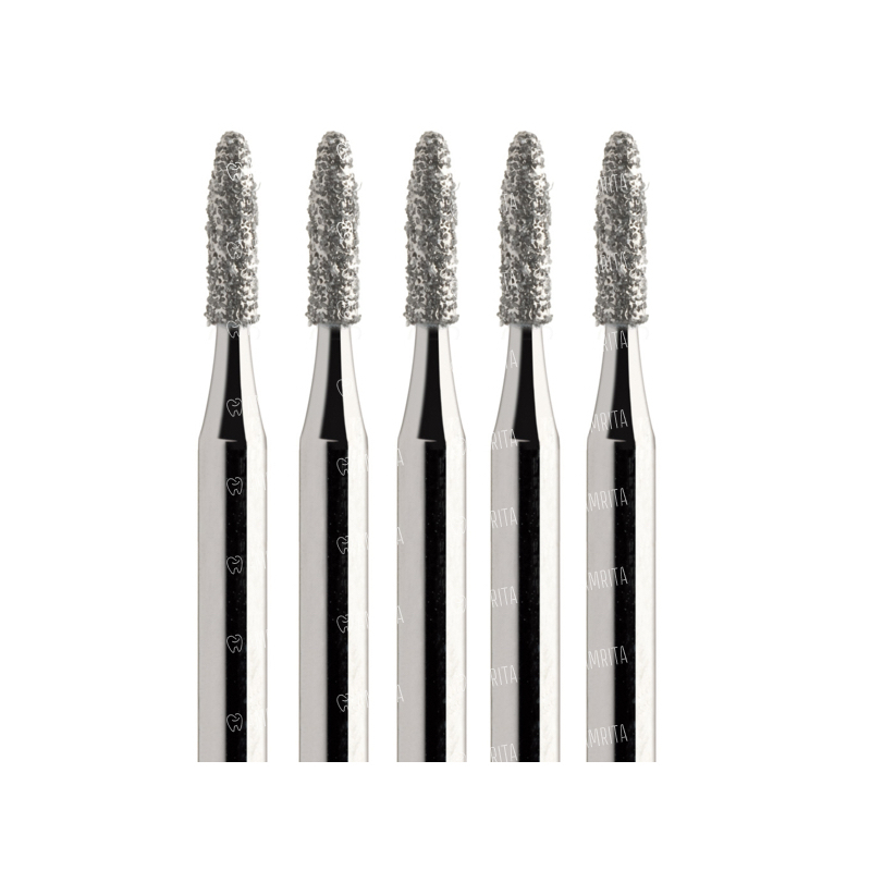 Алмазный бор 860 Dia-Tessin применяется для работы с обычными и высокооборотными бормашинами. Стандартный хвостовик помогает заменить бор на турбинном наконечнике максимально быстро. Пулевидная рабочая часть предназначается для сглаживания краев эмали, шлифовки и полировки жевательной поверхности моляров и премоляров, резцов и клыков. Природный материал показывает высочайшие технические и эксплуатационные свойства.