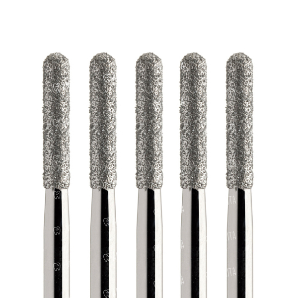 Бор алмазный 881, цилиндр закругленный, D=1.6 мм, L=8 мм, FG, черный, 5 шт