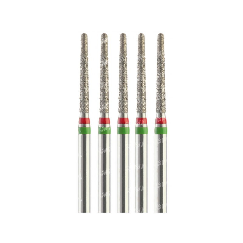 Бор алмазный GF844, конус закругленный, D=1.6 мм, L=10 мм, FG, красный/зеленый 5 шт
