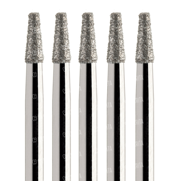 Алмазный бор 845 от Dia-Tessin применяется для турбинных наконечников. Конусовидная форма рабочей части позволяет аккуратно обрабатывать вестибулярные поверхности, формировать и увеличивать полости. Стандартный тип хвостовика позволяет быстро и легко установить алмазный бор на турбинный наконечник. Природный материал обладает высокими режущими свойствами, гарантирует длительную износостойкость.